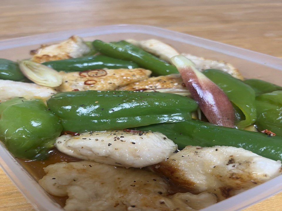 【鶏胸肉とピーマンと茗荷の和風マリネ】
